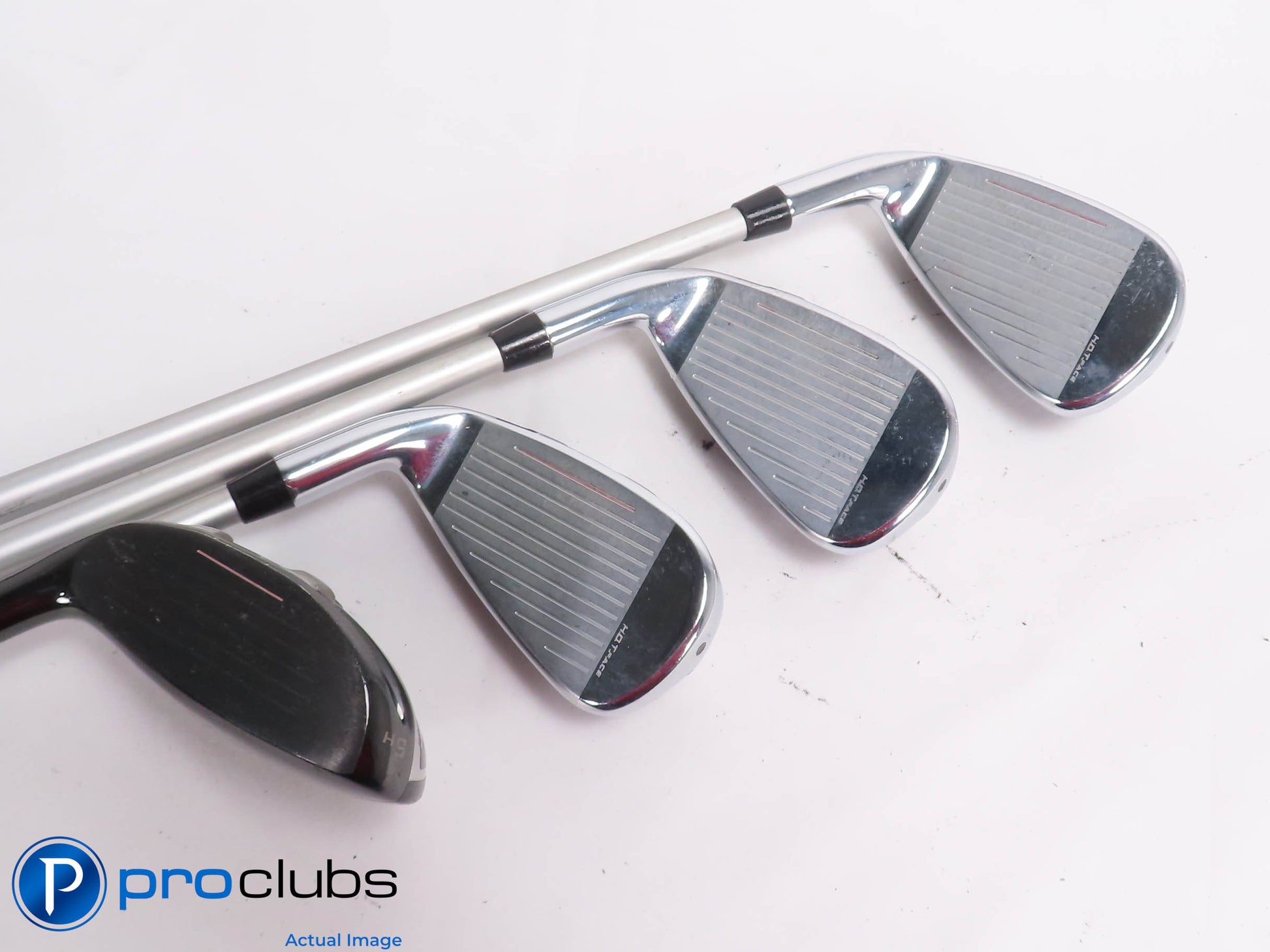 | Condition Notes: | 8 / 10 Good Condition. The faces and soles have some brush marks from normal wear. The grooves look good with lots of rounds yet to be played. The grips look and feel ok but show wear. The 5 Hybrid has some marks and some nicks on the crown. |