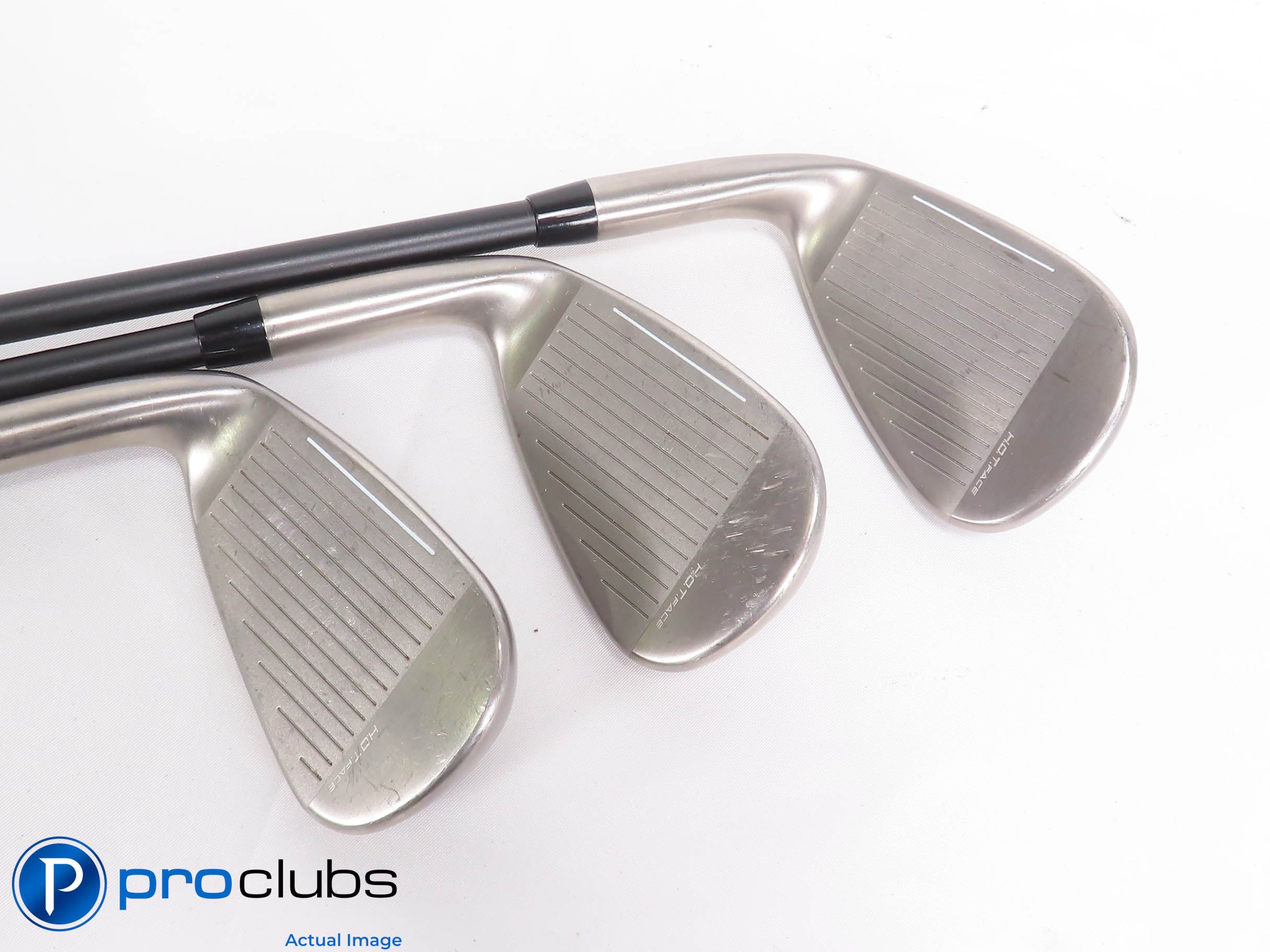 | Condition Notes: | 8.5 / 10 Great Condition. The faces and soles have some light brush marks from normal wear. The grooves are great with lots of rounds yet to be played. The grips are great with minor wear. |