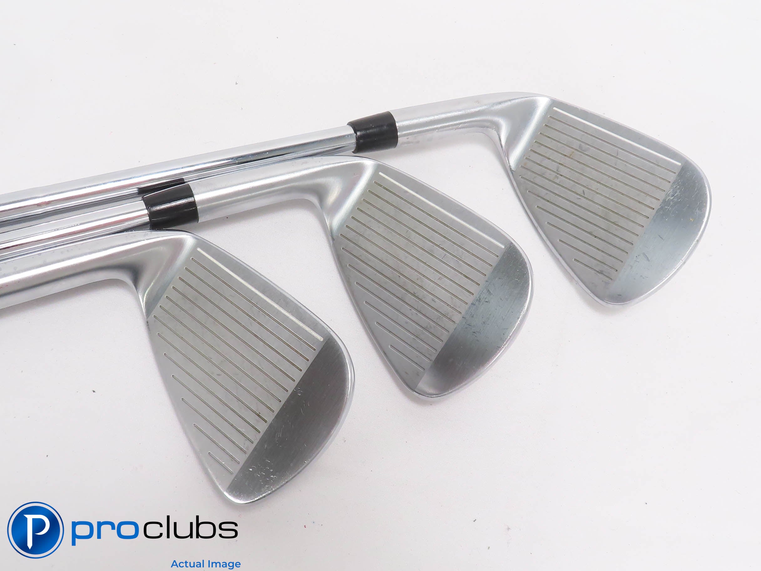 8 / 10 Good condition. The faces and soles have some brush marks from normal wear. The grooves are good with plenty of rounds yet to be played. The grips look and feel good but show wear.
