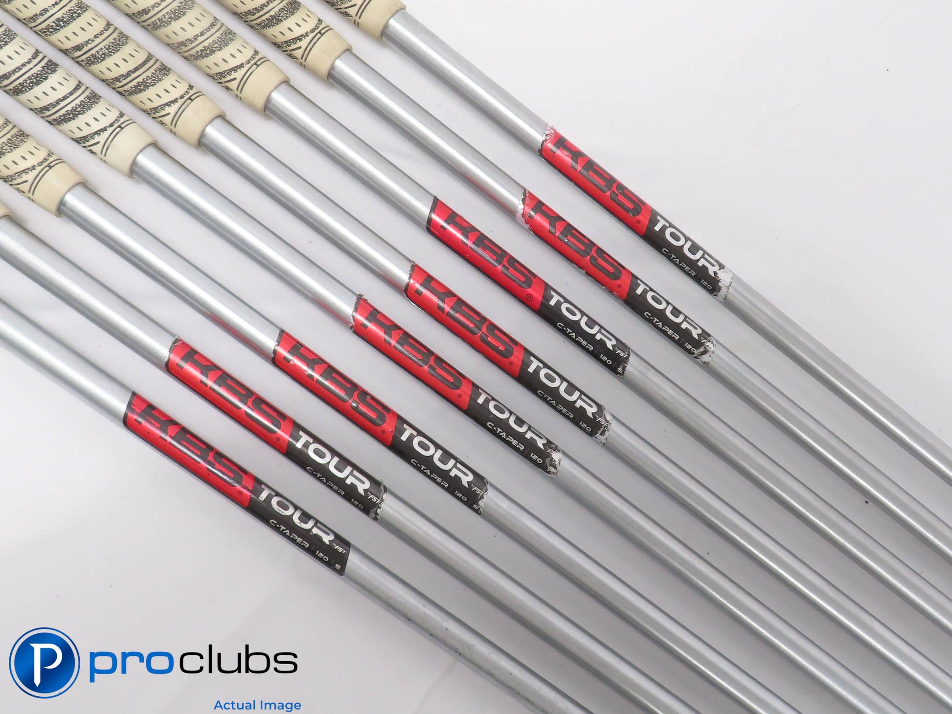 Condition Notes: 7.5 / 10 Average Condition. The faces and soles have some brush marks and some scarring from normal wear. The grooves show wear but still have some rounds yet to be played. The grips are worn and should be replaced. The 3 Iron has a Golf Pride Tour Velvet Midsize grip.