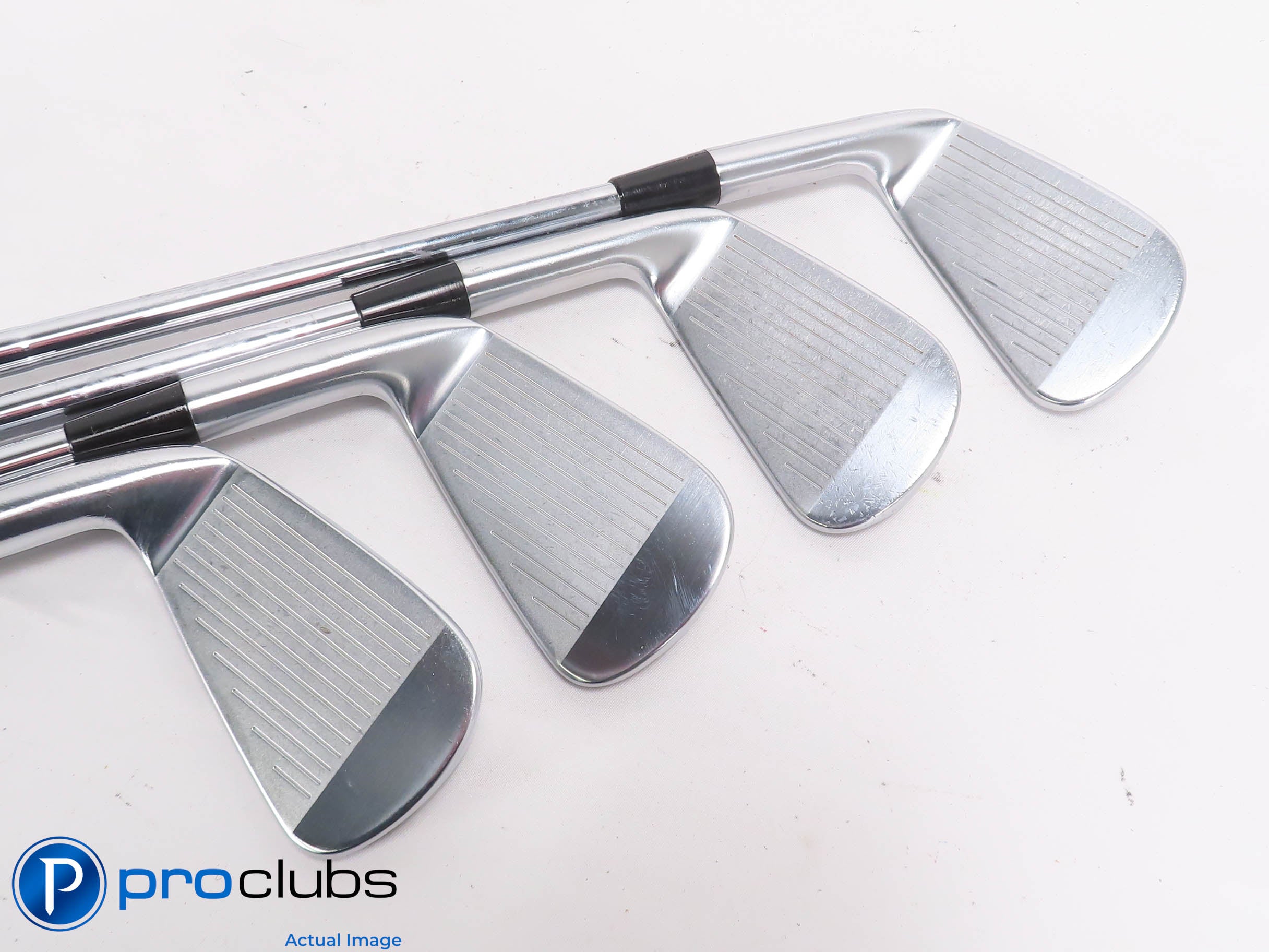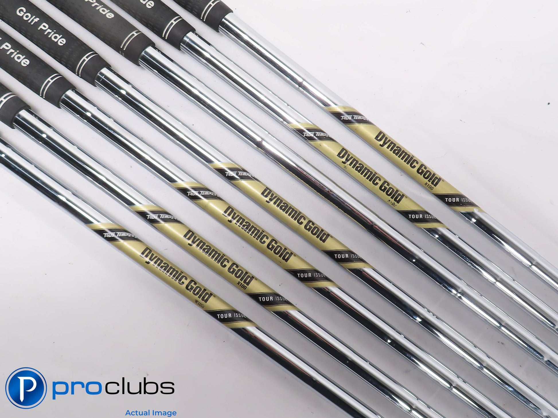 | Condition Notes: | 7.5 / 10 Average condition. The faces and soles have some brush marks from normal wear. The grooves show some wear but still have plenty of rounds yet to be played. The grips are worn and should be replaced. The 7 Iron has a Dynalite Gold X-Flex Shaft. Custom stamps on the heads (See Photos). Combo Set - (3,4 Irons Vaper Pro Combo), (5-9 Irons Vapor Pro). |