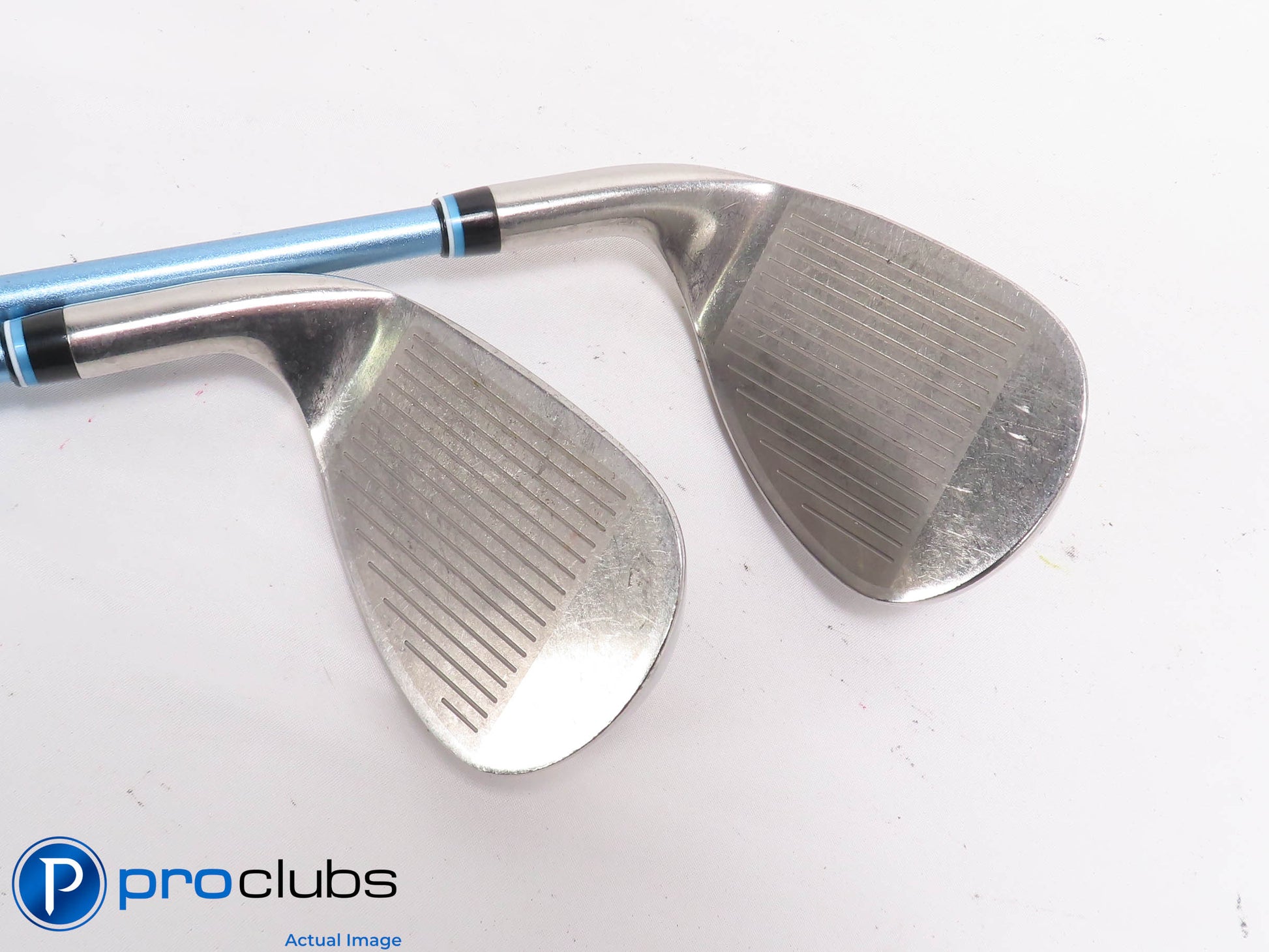 8 / 10 Good condition. The faces and soles have some brush marks from normal wear. The grooves are good with plenty of rounds yet to be played. The grips are ok but show wear.