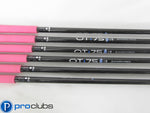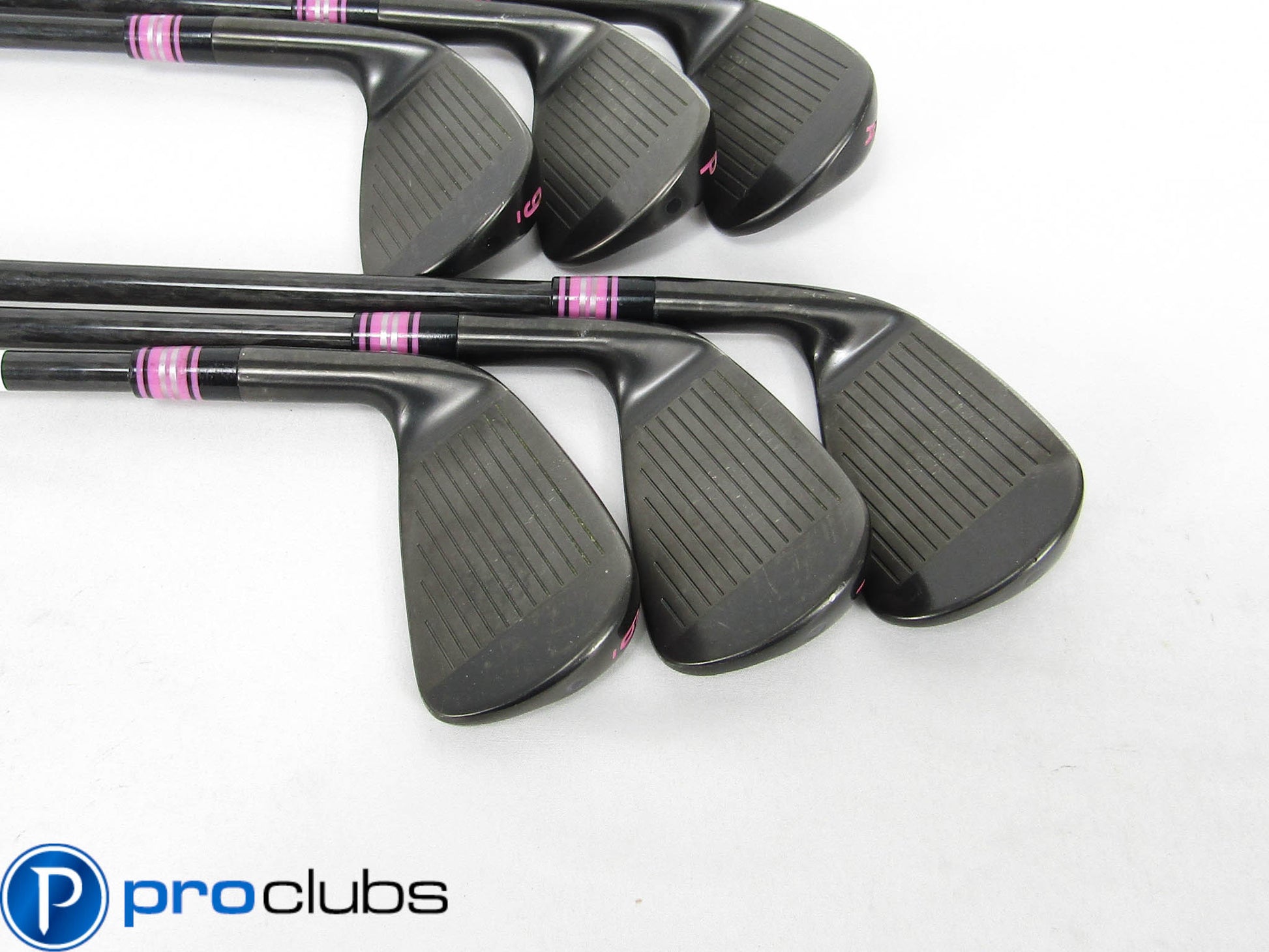 Condition Notes: 7.5 / 10, the set is used showing scarring throughout the club heads from seeing regular use. Free from any large dings or signs of abuse. Shafts are perfect and grips remain in good shape. Upgraded PURE installed Mitsubishi OTi Shafts.