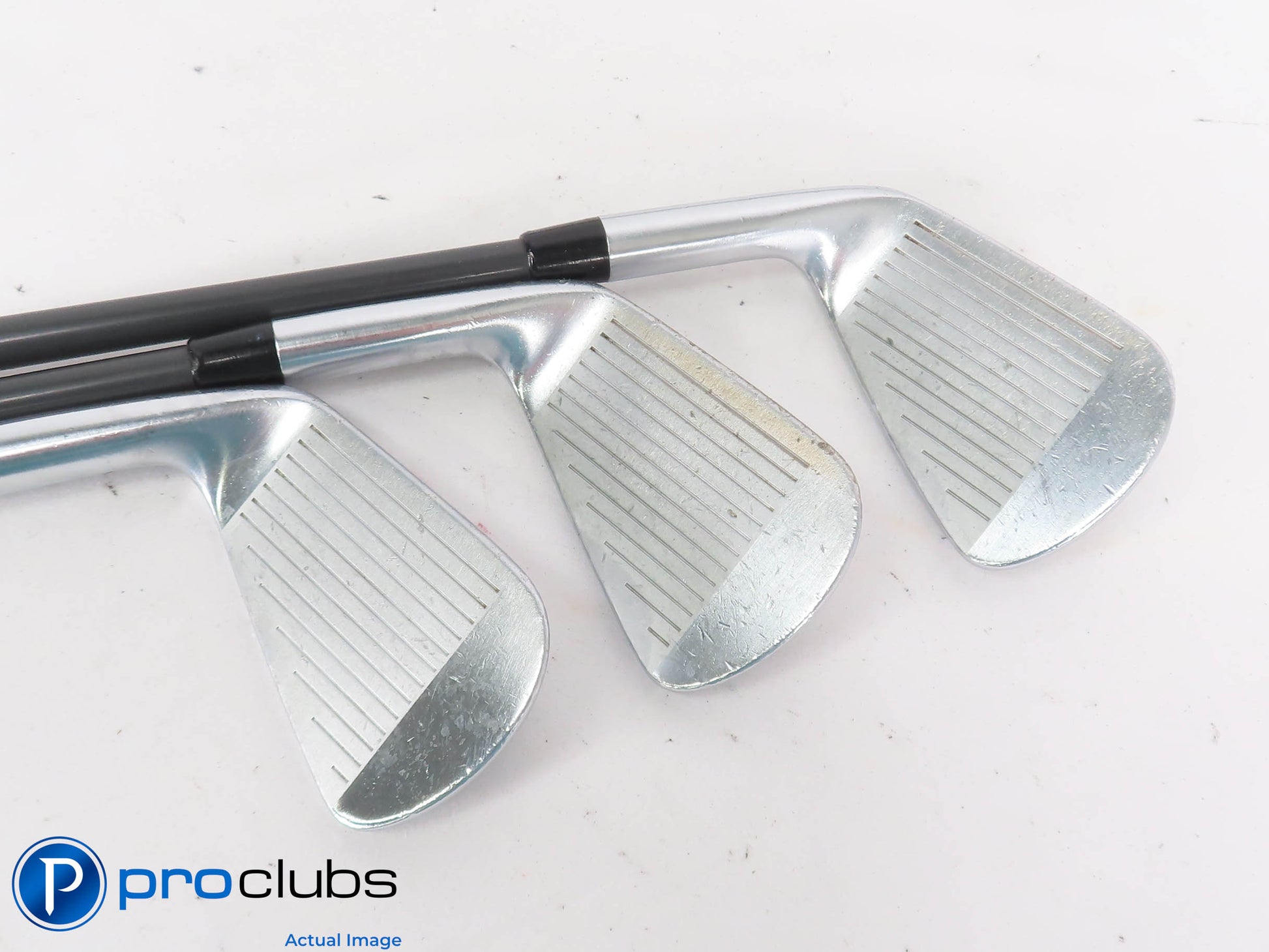 7.5 / 10 Average Condition. The faces and soles have some brush marks and some scarring from normal wear. The grooves are good with plenty of rounds yet to be played. The grips are worn and should be replaced soon.