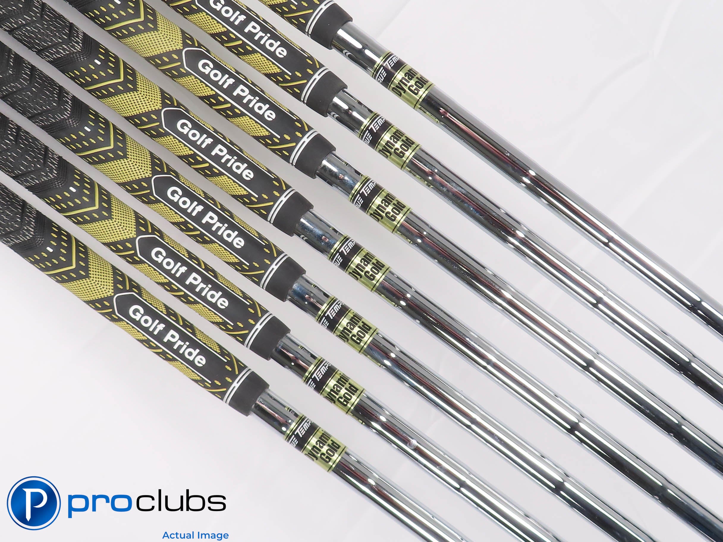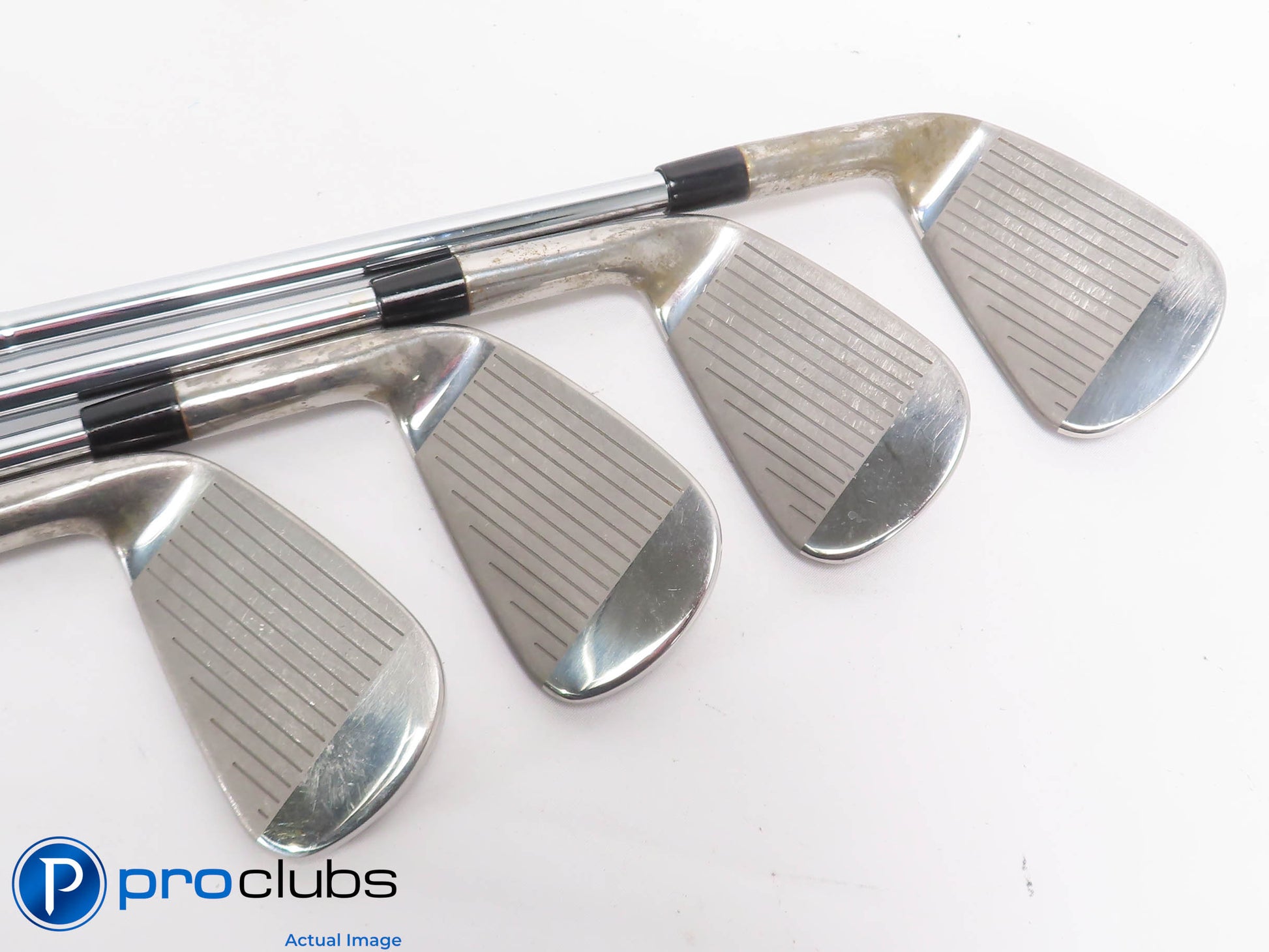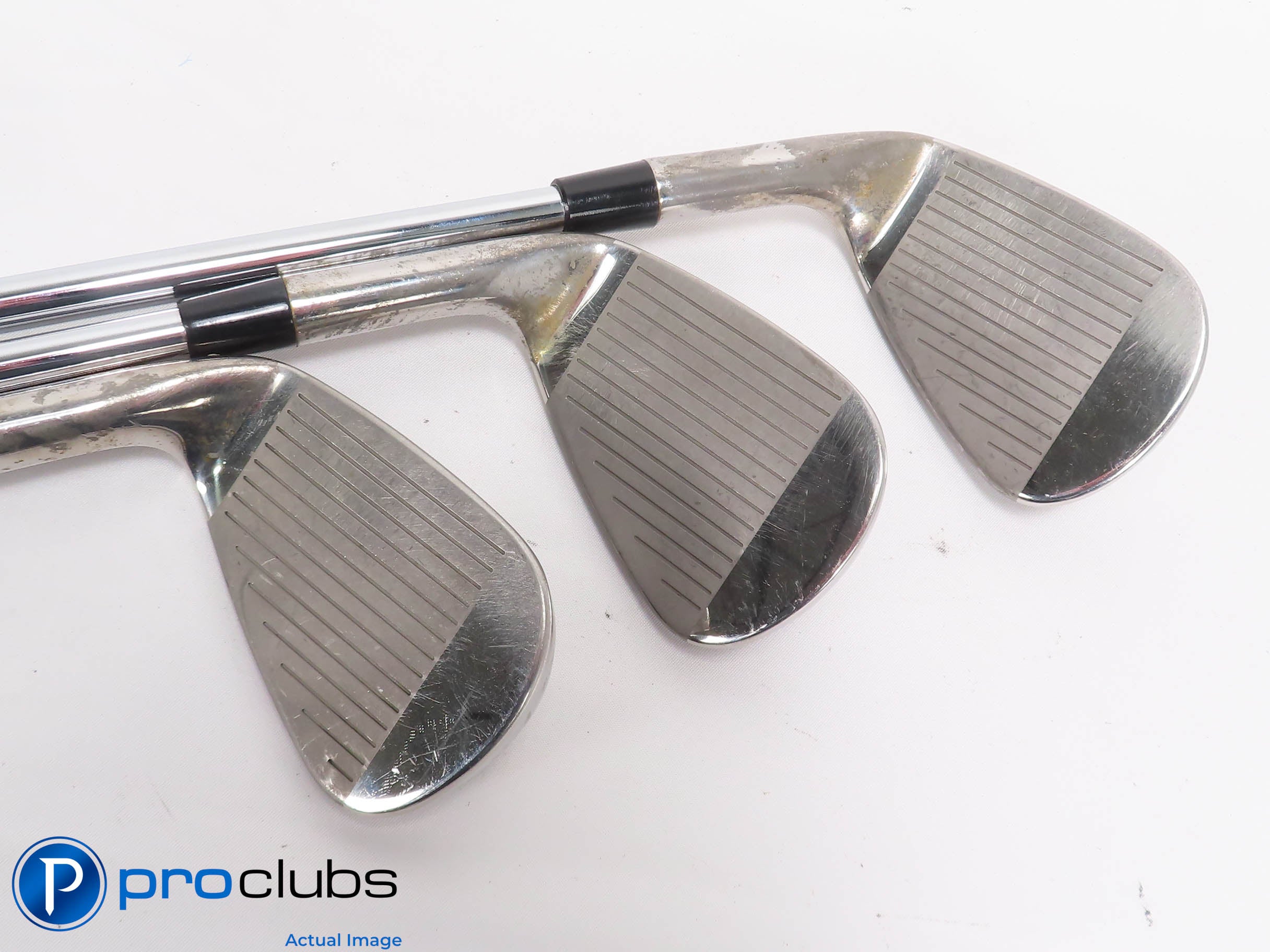 8 / 10 Good condition. The faces and soles have some brush marks from normal wear. The grooves look good with lots of rounds yet to be played. The grips look and feel good but show some wear. Limited Edition Xander Schauffele Irons.