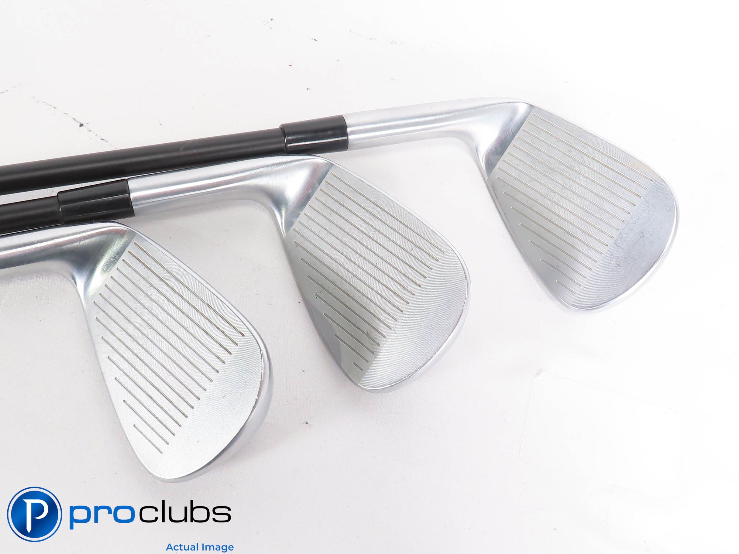 8 / 10 Good Condition. The faces and soles have some brush marks from normal wear. The grooves look good with lots of rounds yet to be played. The grips are good but show wear.